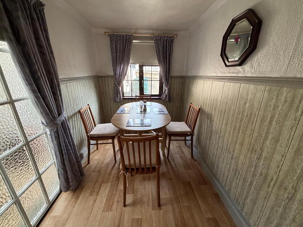 3.10m x 1.80m Located to the rear of the property, this extended dining space features lino flooring, a rear-facing window, and a door providing access to the side extension and rear garden.