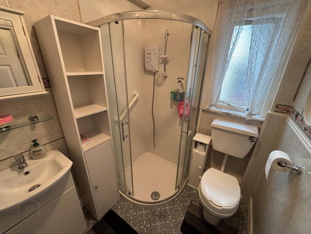 1.60m x 1.80m Well-maintained and functional, this space includes a Triton T80Z electric shower, WC, and wash hand basin. Finished with lino flooring and in good overall condition.