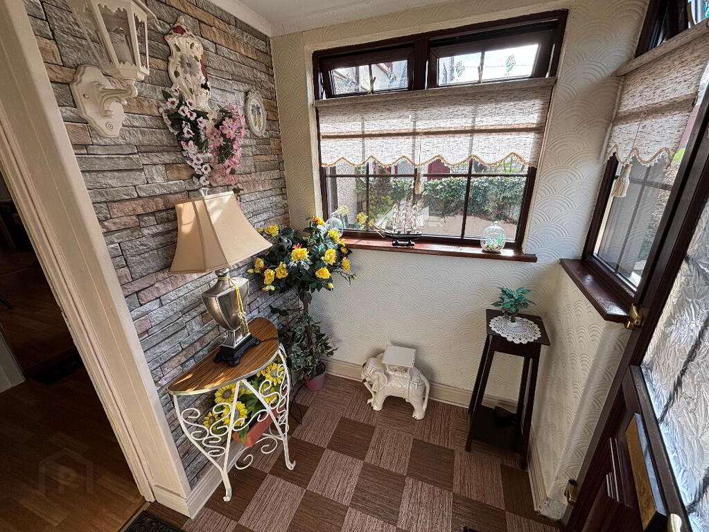 2.00m x 1.50m A bright and welcoming entrance porch featuring a teak-effect front door, laminate flooring, and a PVC window allowing for excellent natural light.